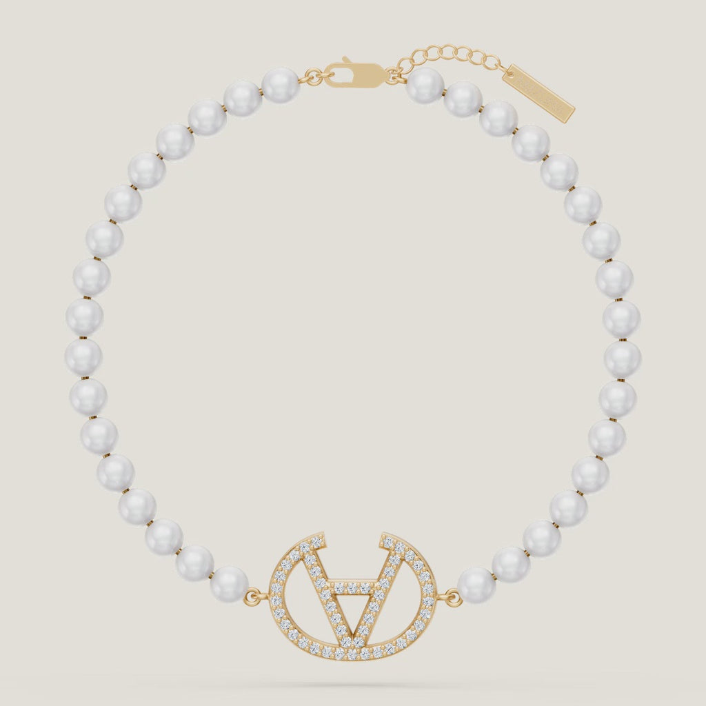 Das AMI Pearls Armband Pavé aus 585er Echtgold (14 Karat) überzeugt durch sein elegantes Design und hochwertige Verarbeitung. Der dezente Anhänger in Form eines umgekehrten A ist besetzt mit Zirkonia-Steinen und wird von feinen Perlen umrahmt – eine harmonische Verbindung aus klassischer Eleganz und modernem Glanz. Ob im Alltag oder zu besonderen Anlässen – dieses Armband verleiht jedem Look eine luxuriöse Note.